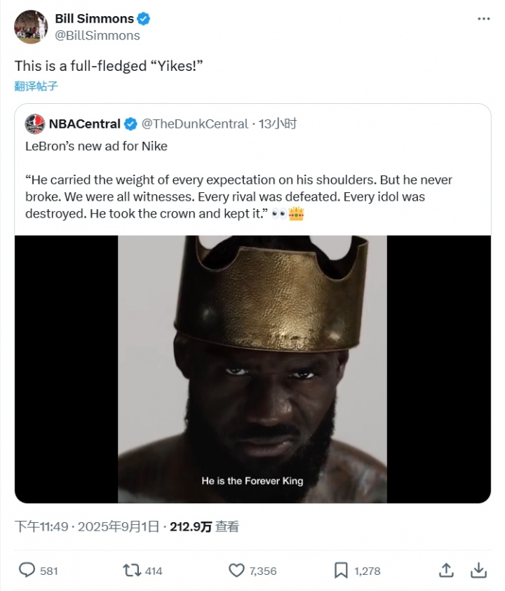 名记Bill Simmons转发了相关报道,并吐槽:“这次是真真正正的让人厌恶。”
