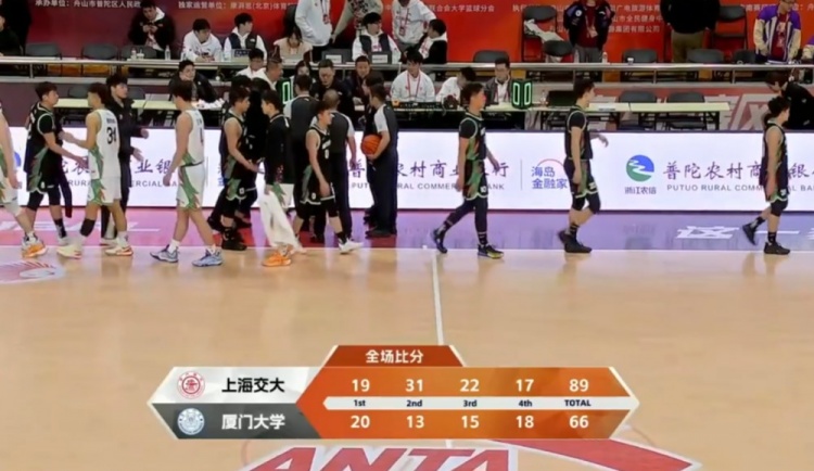 巨大优势之下上海交大末节打得非常放松,吴泽昊和冯祥硕相继命中三分,进攻端上海交大继续占优并不断拉大领先;厦门大学这边郑博文连投带罚抢分,但在巨大分差面前无力制造威胁。最终,上海交通大学89-66轻取厦门大学迎来排位赛胜利。